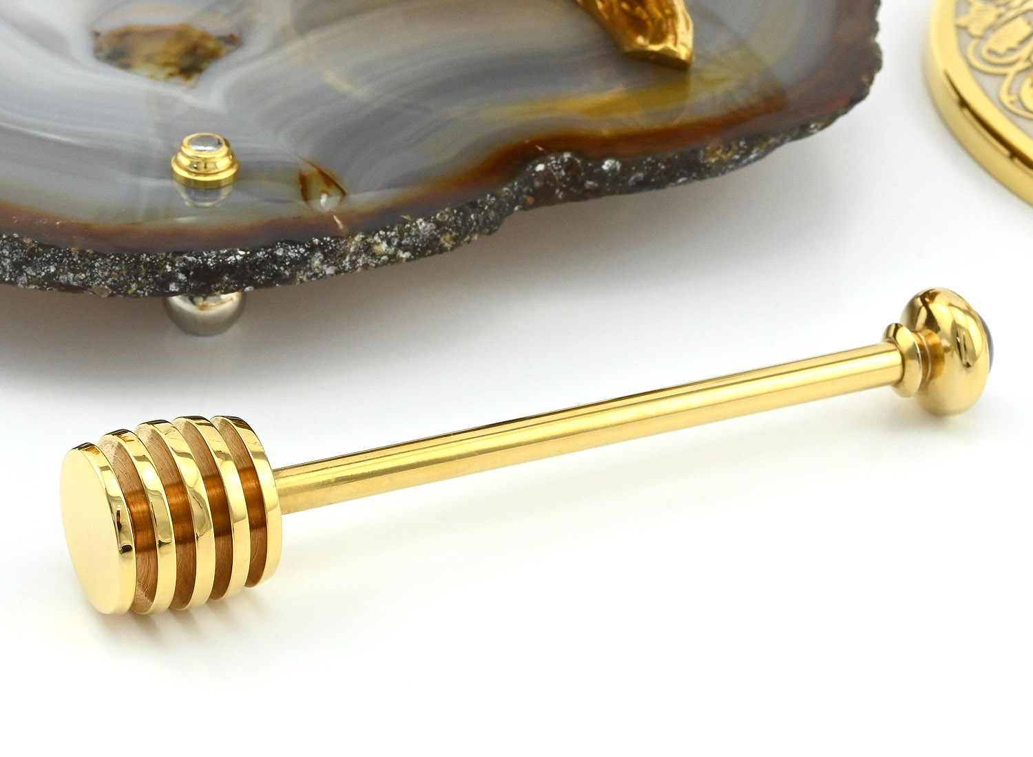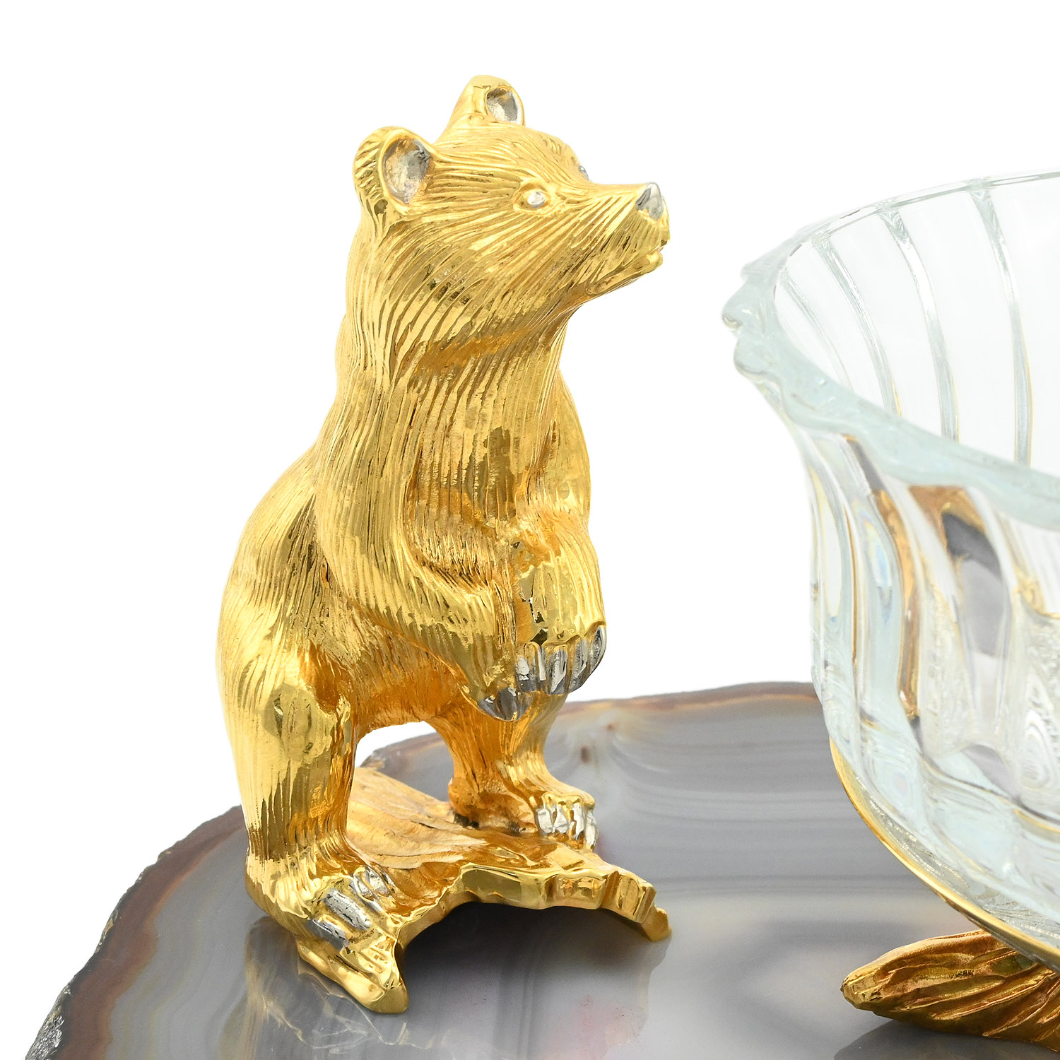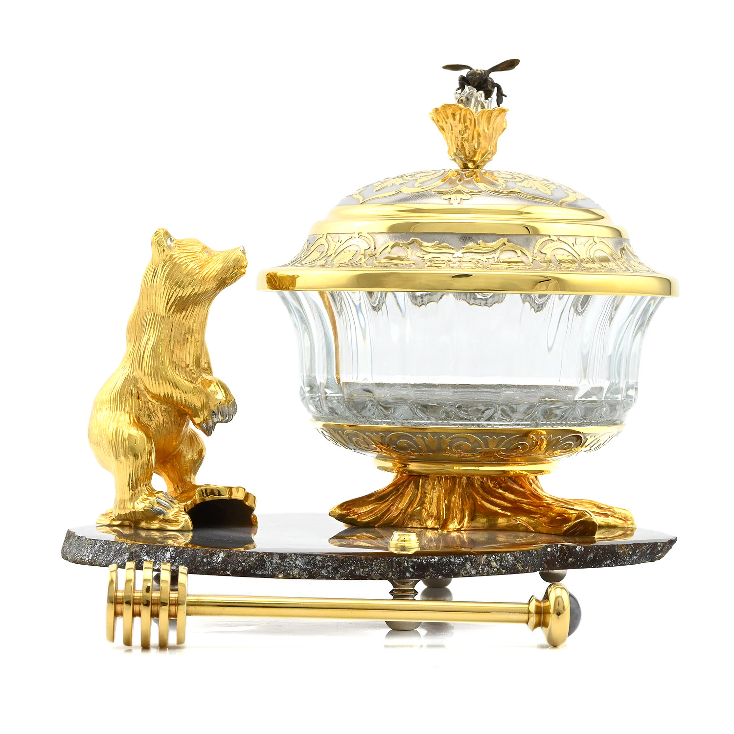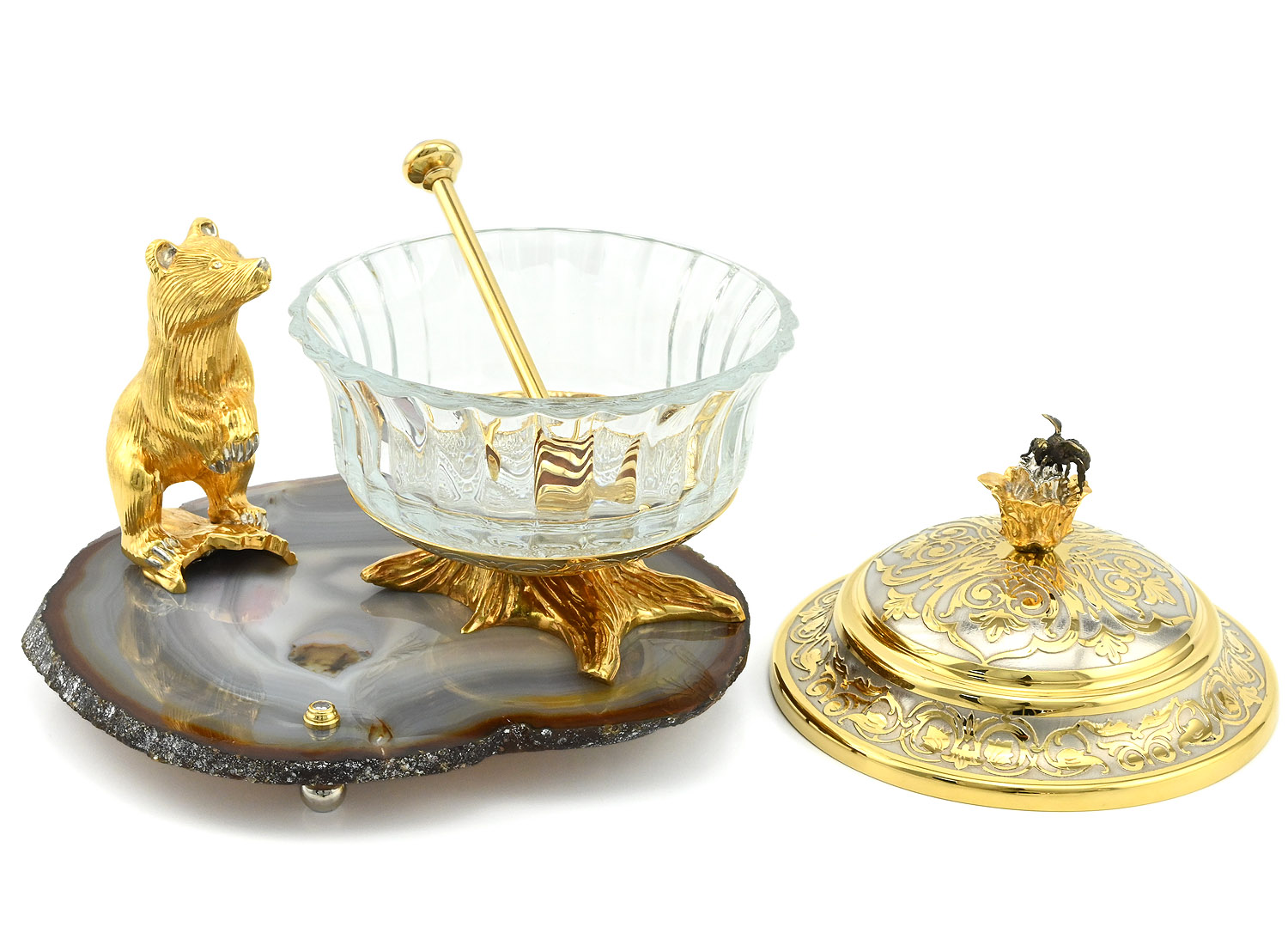 Элегантная и роскошная медовница "Медвежонок" станет прекрасным подарком для ценителей изысканных вещей. Изделие сочетает в себе традиционные техники ювелирного искусства и современный дизайн, создавая неповторимый образ.